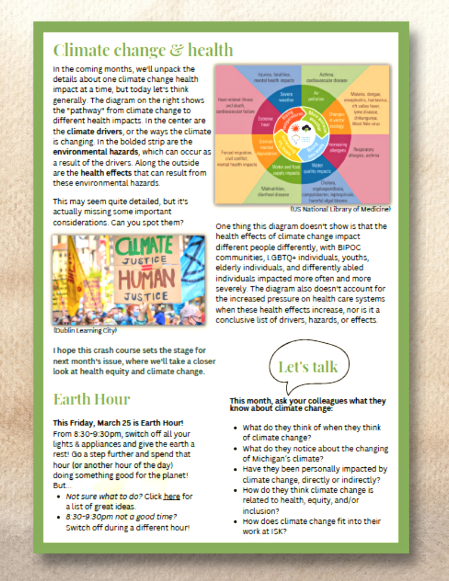 In 15 information-packed installments, she helped us learn how climate and health are interrelated, how things like heat and storms affect our overall wellness, and the importance of considering climate impacts on mental health. She offered actionable tips and reassurance along the way. We wish her well in her many climate-related pursuits, including her PhD at the University of Galway!