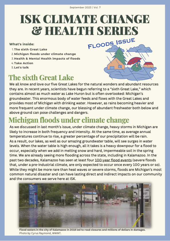 The ISK Climate Change & Health Series will explore the ways climate change is connected to health, with an emphasis on Kalamazoo’s climate change challenges and ISK’s role in building resilience.
